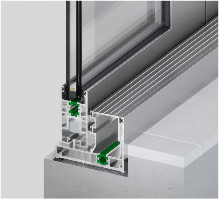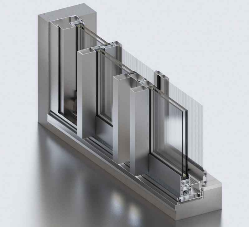 B.DS050 là hệ cửa đi trượt, cung cấp hai cấu hình gồm phiên bản có cầu cách nhiệt và phiên bản không cầu cách nhiệt, được thiết kế nhằm tối ưu hiệu quả sử dụng năng lượng và nâng cao điều kiện tiện nghi trong công trình. Hệ nhôm được gia cường nhằm tăng cường độ cứng vững, khả năng chịu lực và độ ổn định tổng thể của kết cấu.