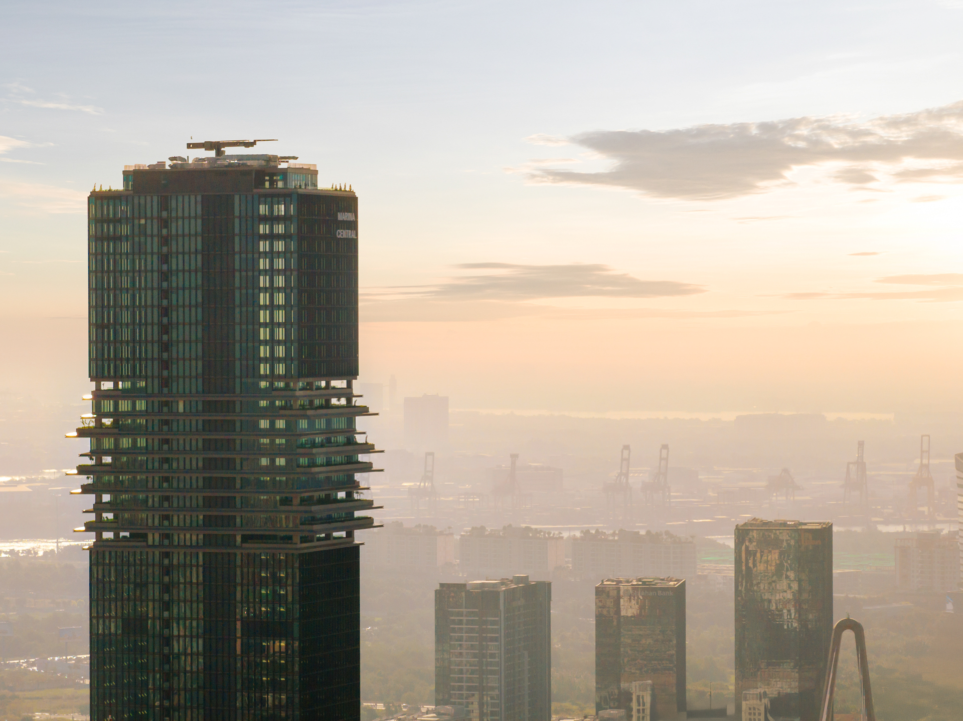 Đường nét dõng dạc, hình khối khoẻ khoắn, vật liệu hào hoa, tòa tháp Marina Central Tower 55 tầng cao 240m là kết tinh của kiến trúc hiện đại vào nguồn cảm hứng văn hoá dân tộc với những tầng giật cấp liên tiếp như thửa ruộng bậc thang.